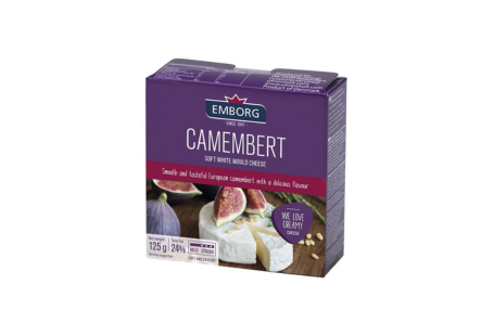 卡門貝爾乾酪外表包覆著一層白黴,內部為黃色,帶有鹹味及獨特的香味,口感滑順細緻