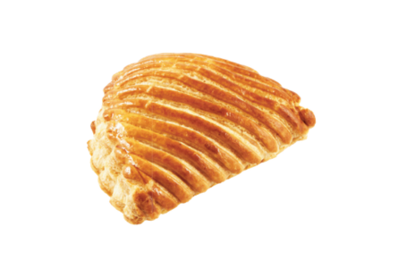 特色為天然無添加奶油、層次分明、口感酥脆香濃,是法式經典Chausson aux pommes(蘋果拖鞋酥)的代表、具有天然奶油香氣與濃郁的蘋果風味
